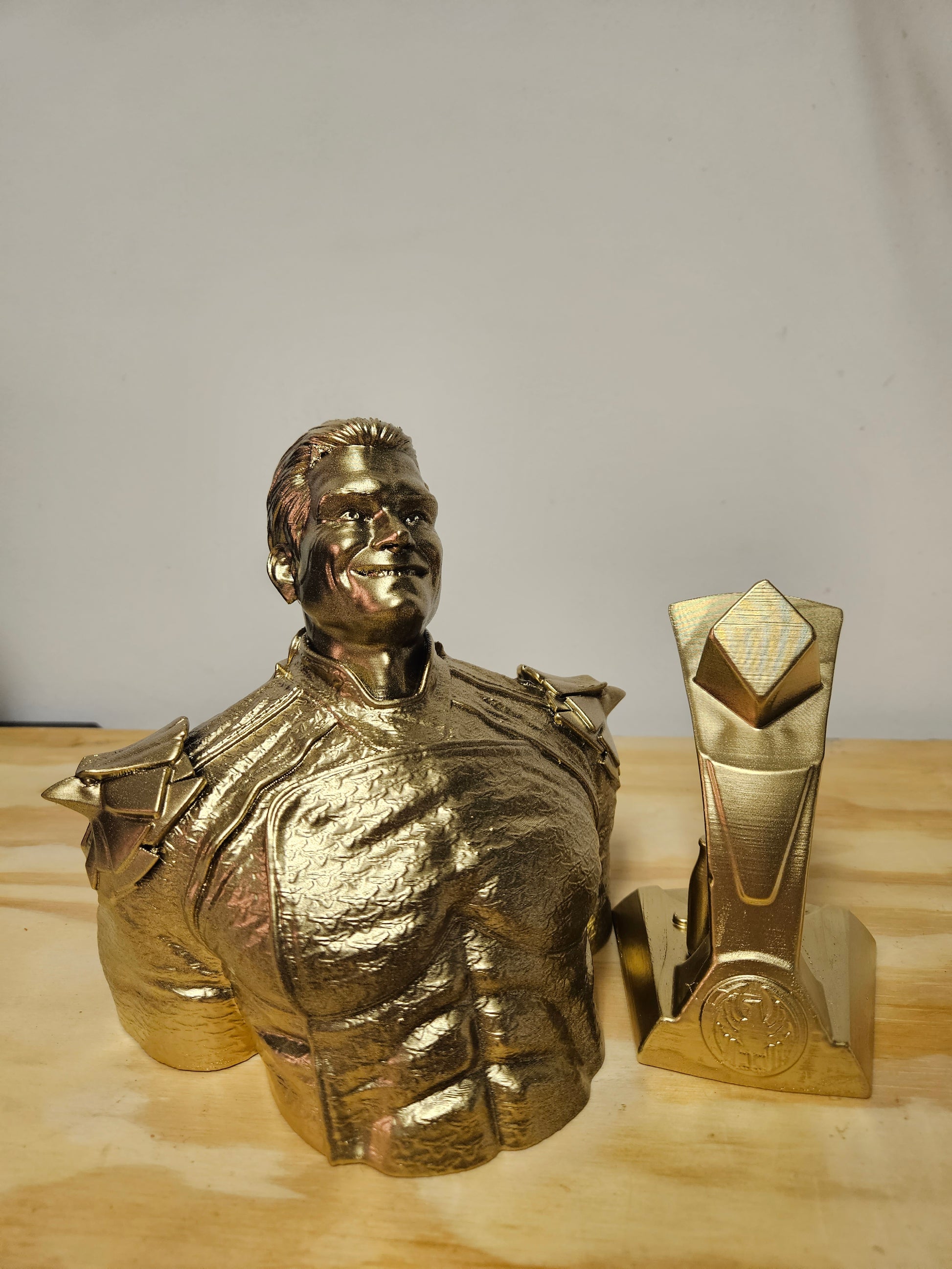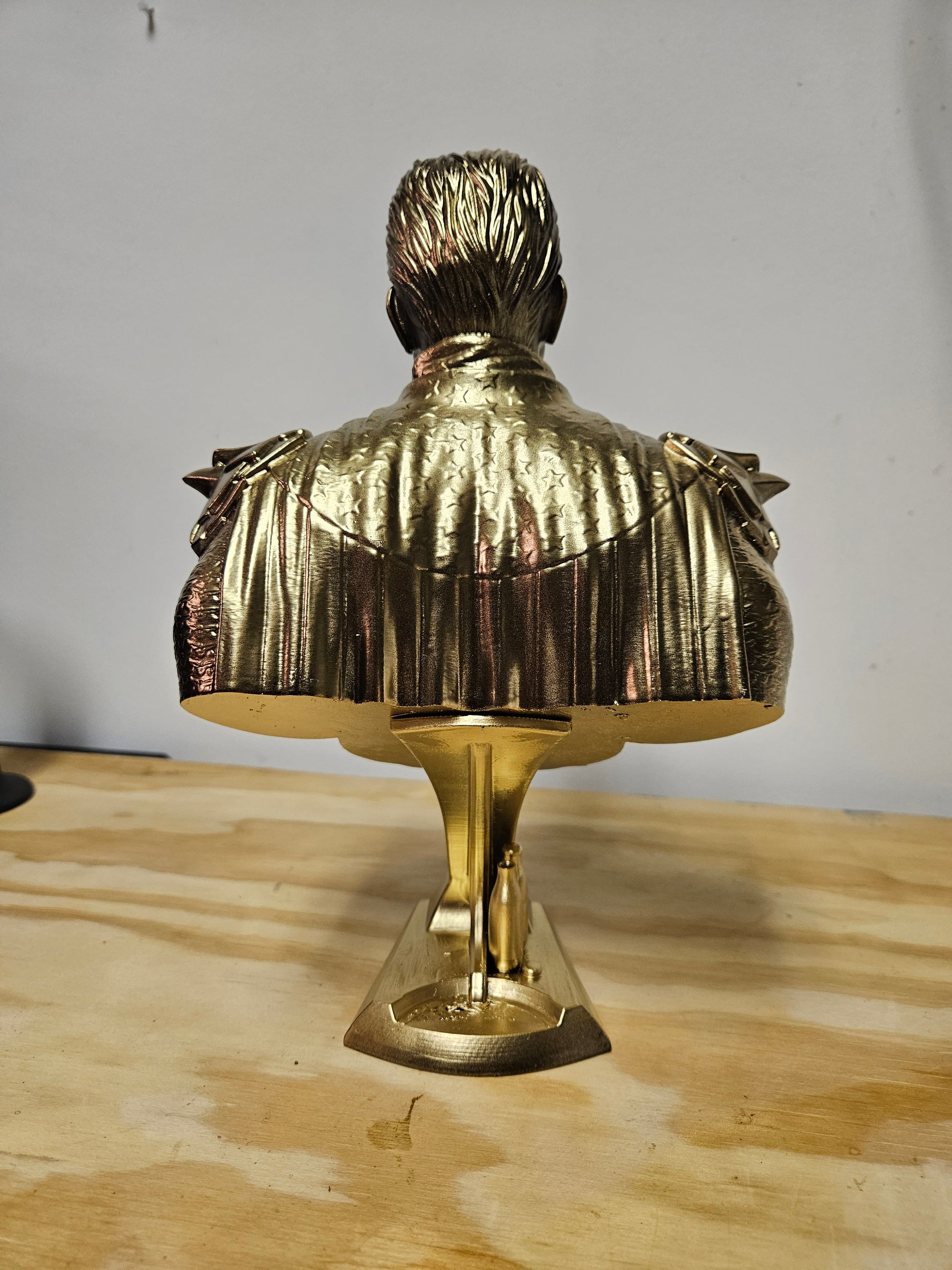 Behold this exquisitely crafted 3D Printed bust replica of Homelander, meticulously capturing his sinister smile. This Masterpiece comes in 2 different finishes. Choose the fitting shining gold chrome, radiating an aura of power and prestige. Or opt for raw print, a blank canvas awaiting your own artistic touch.